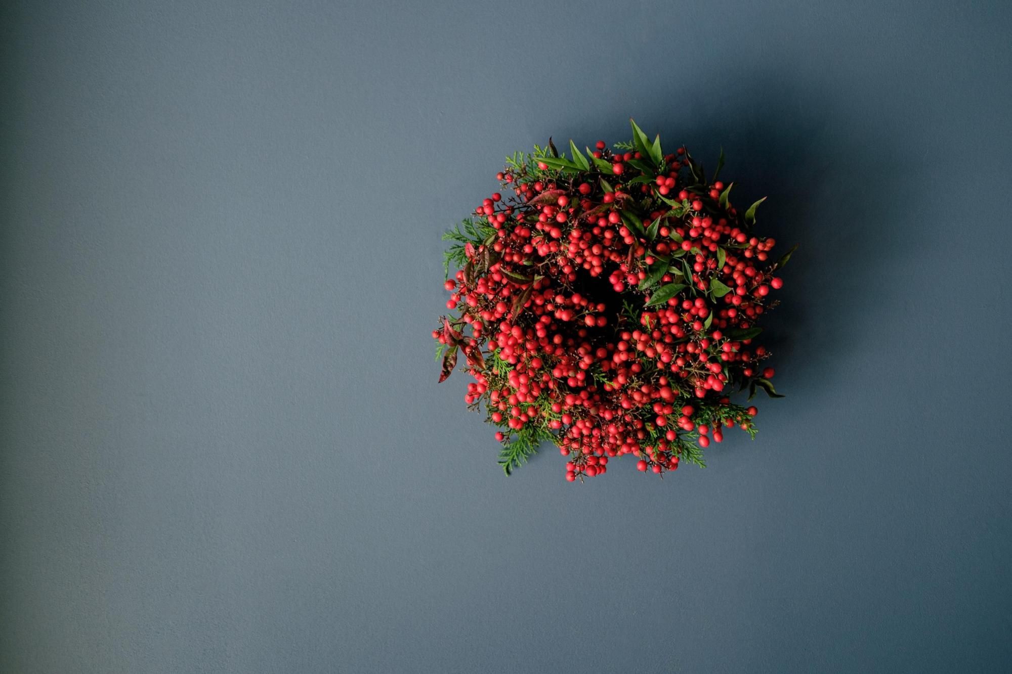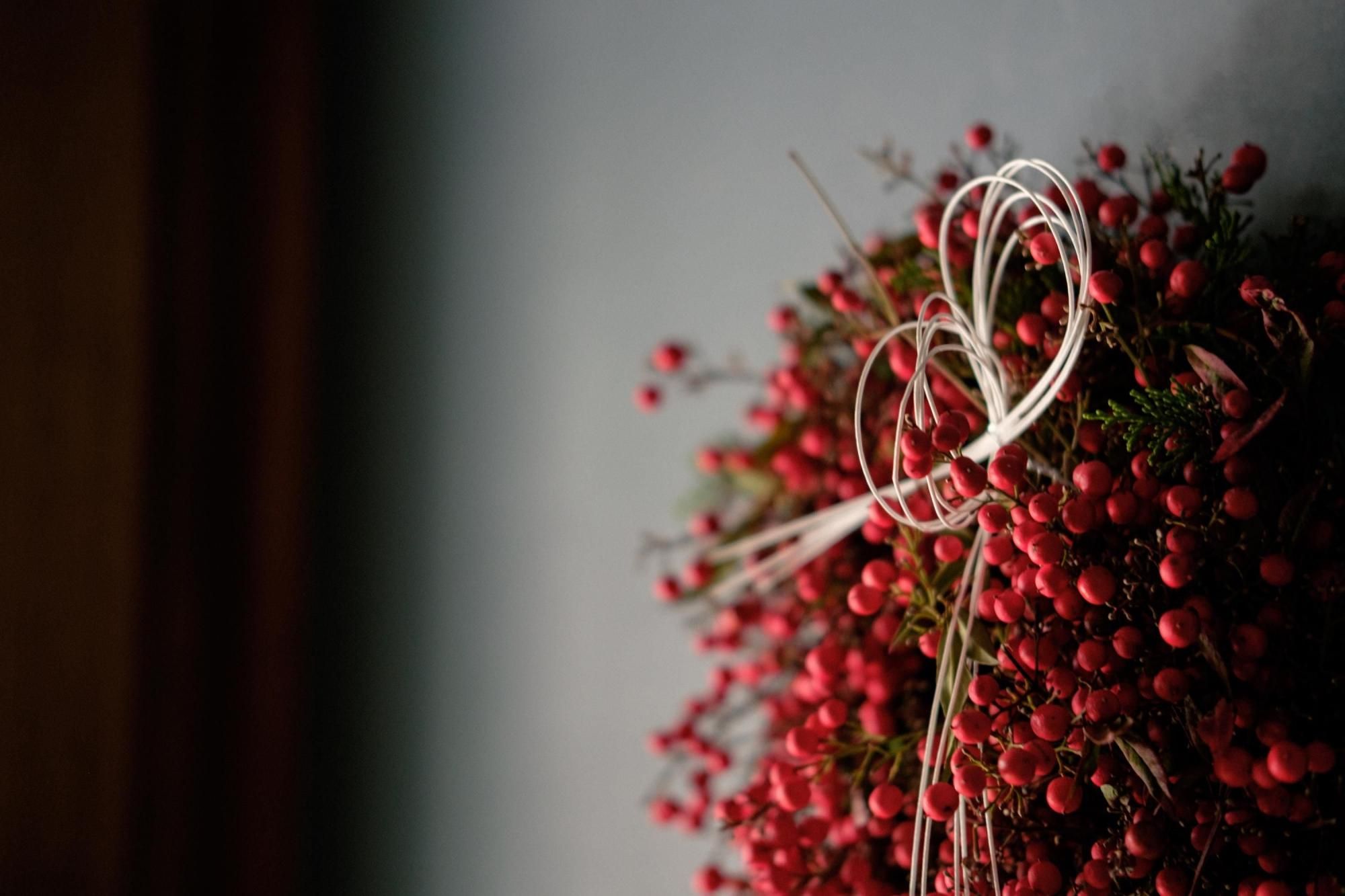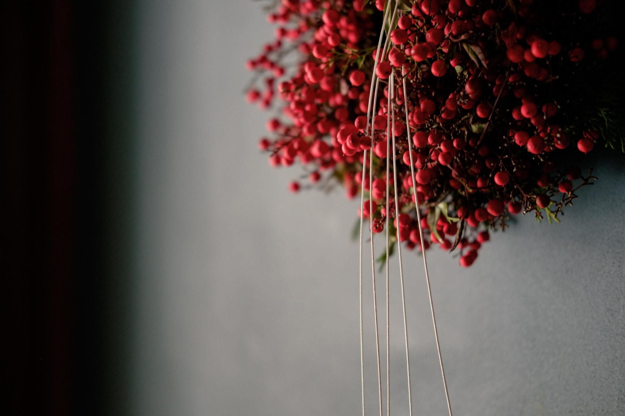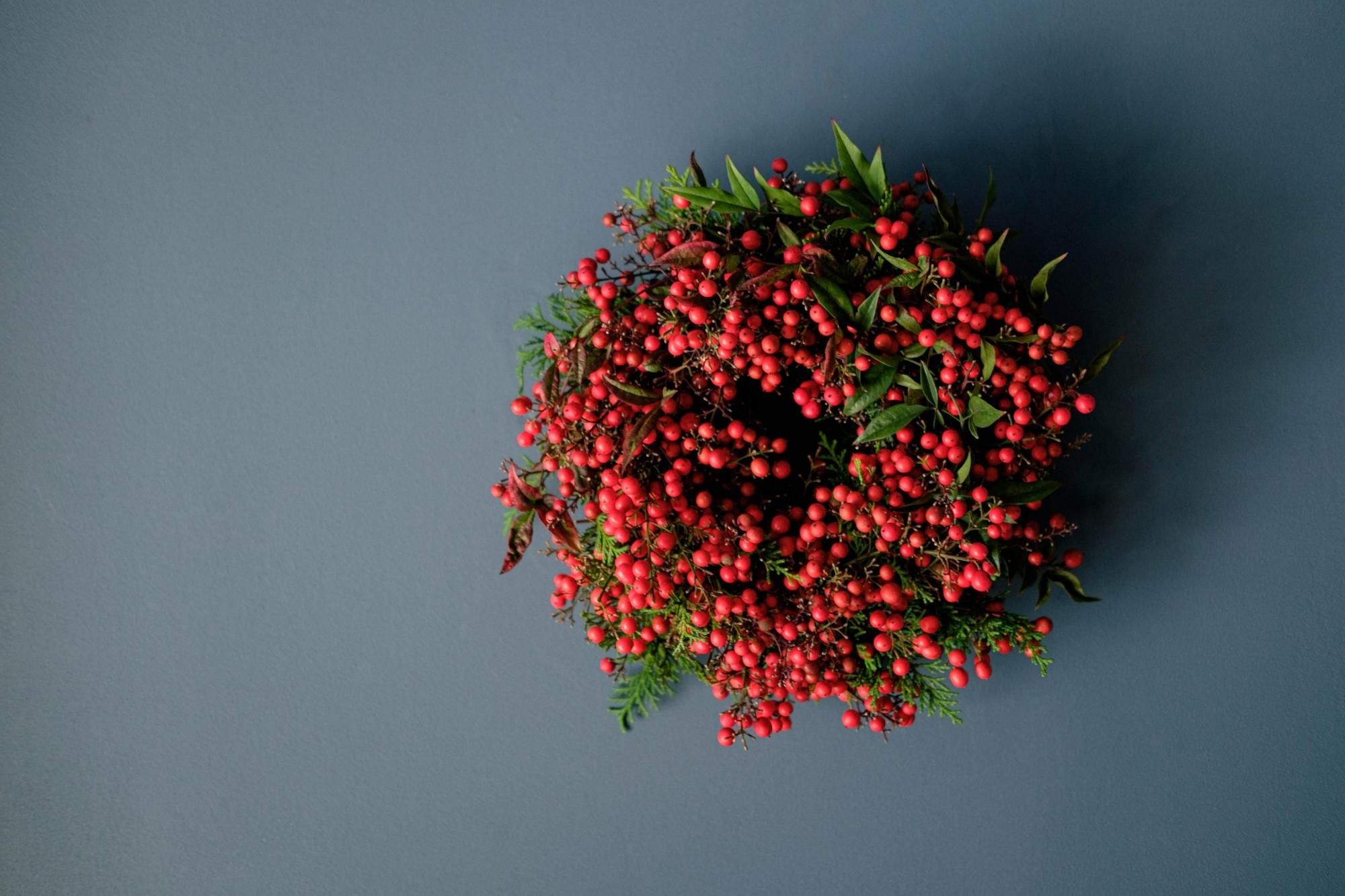 お正月の風物詩、南天でつくる真っ赤なリースのキットを販売します。